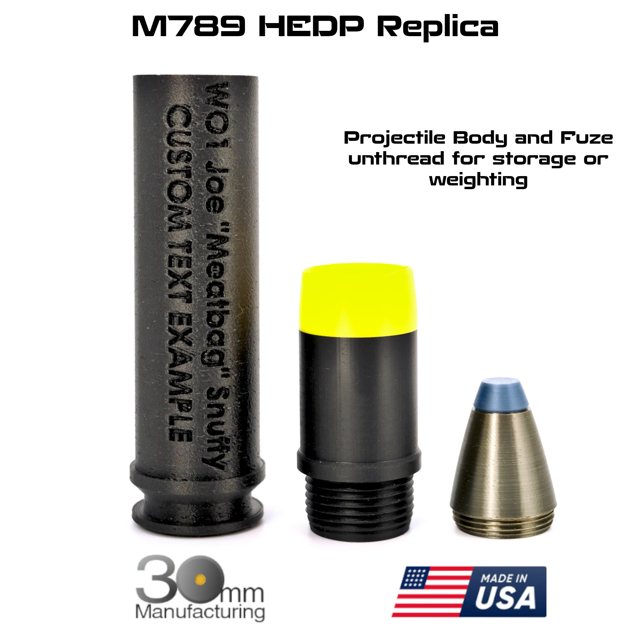 Highly accurate (to within 1/5th of a mm) replica of the M789 HEDP complete cartridge fired by the AH-64 Apache from it’s M230E1 chain gun with customizable text. A perfect gift item for aviation lovers or military events.